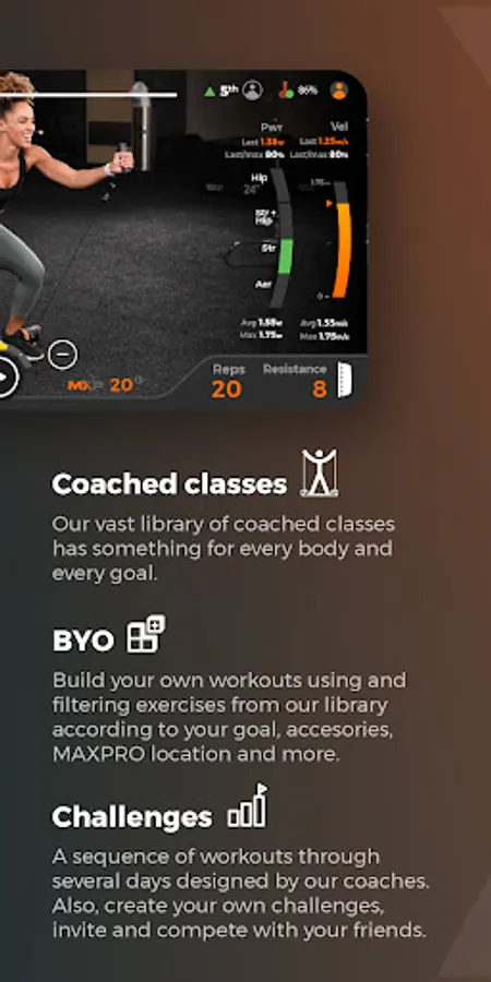 • The MAXPRO Performance App incorporates Velocity Based Training (VBT) in combination with Heart Zone Optimization(HRO) to precisely guide user energy systems to achieve optimum results faster.