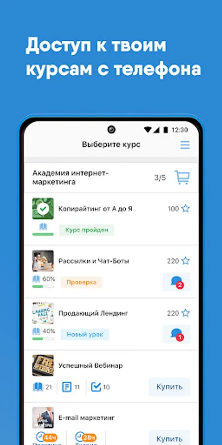 You can also order a separate mobile application from the support or sales department, branded only for your online school. There will only be your school's courses, your cover, your logo, and your corporate colors.
