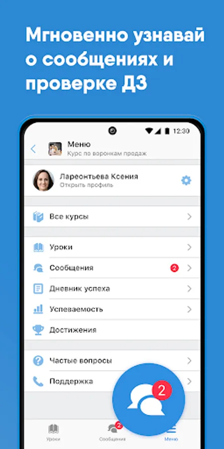Push notifications allow you to instantly learn about new messages in the course chat, new lessons, remote sensing and other important learning events.