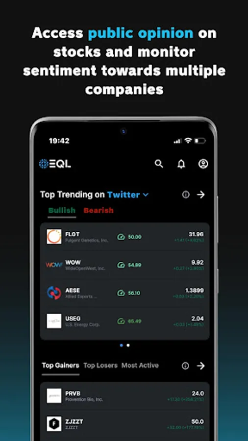EQL graphs real-time social momentum, sentiment and popularity of the stocks you trade. Monitor the significant increases in post activity on Twitter which usually indicates there is something positive or negative occurring and will likely impact the sentiment of a company. Our Social Analytic tools enable you to control your trading better by understanding the psychology of retail investors in forums along with sentiment of latest news. Additionally, it is providing the most comprehensive information, simplified with 10+ years of Fundamentals, Real Time Price, Key Ratios, News and Top Analyst Rating.