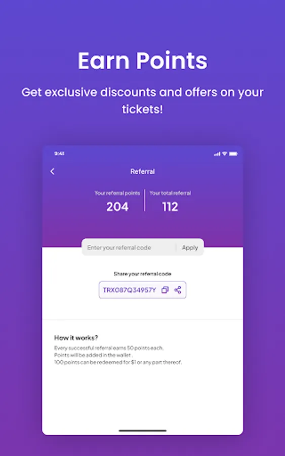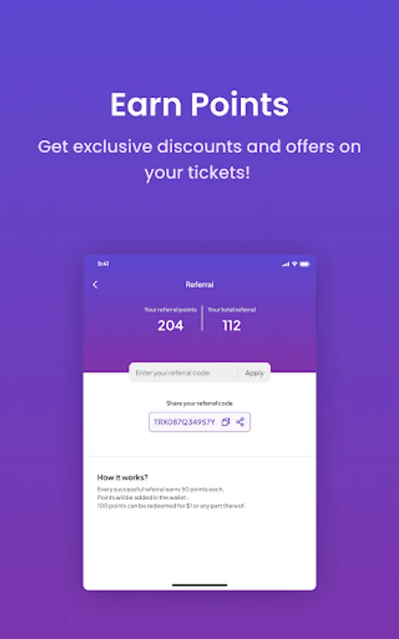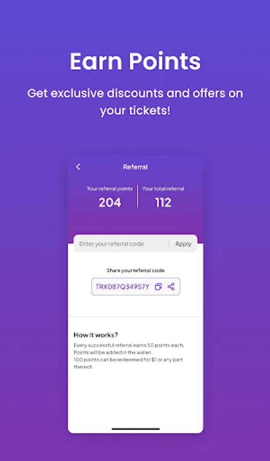 * Receive points that can be converted into cash toward ticket purchases
