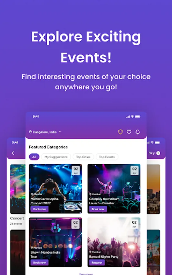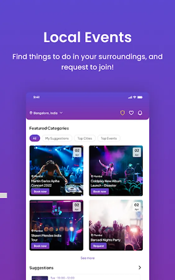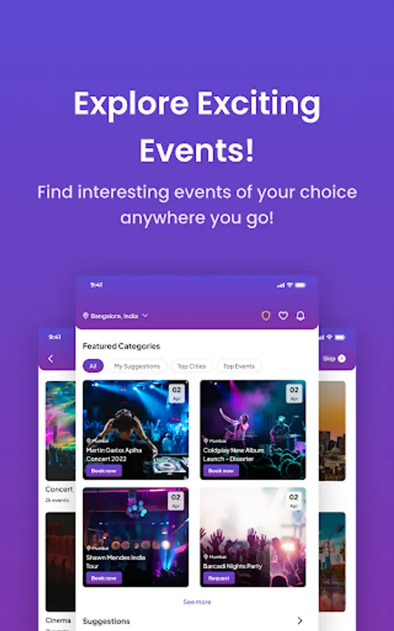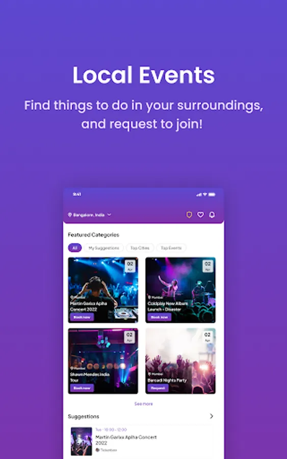 * Discover popular and recommended events happening around you