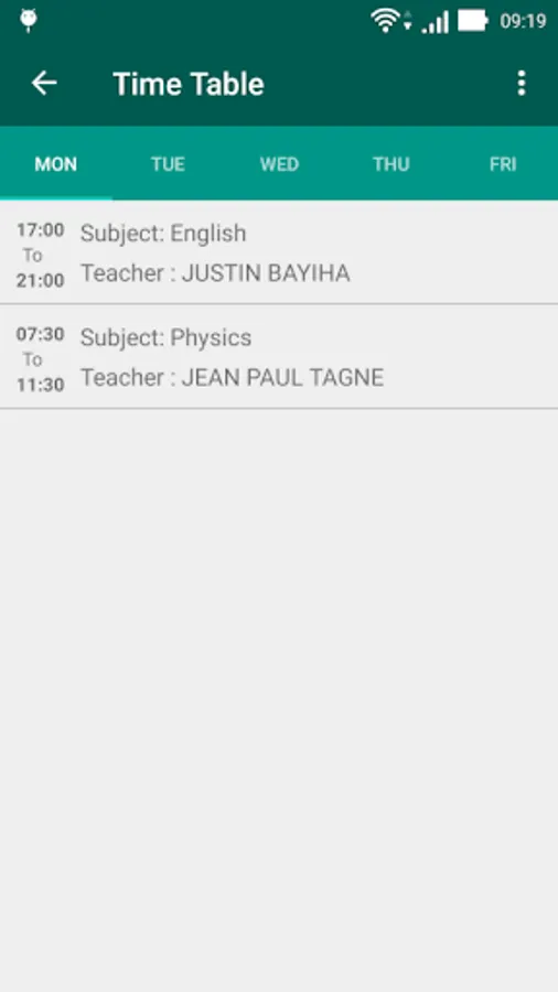 - the timetable,