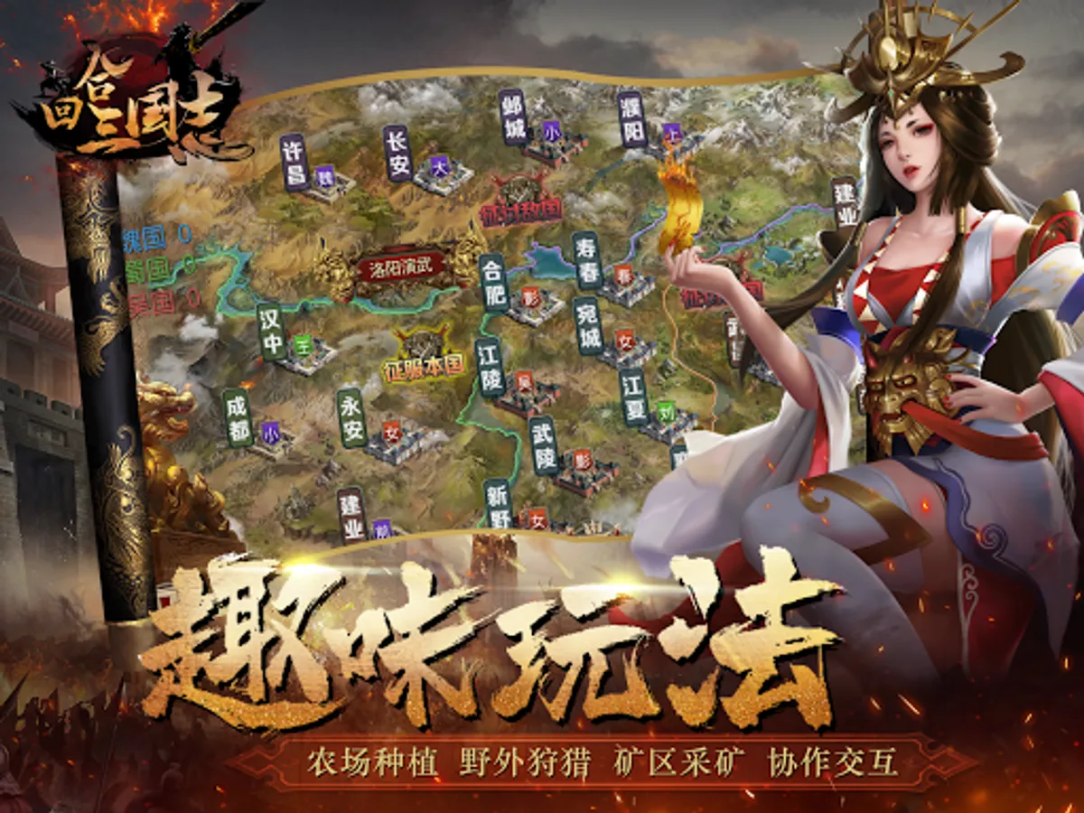 游戏背景设为三国末期,阵营分为魏蜀吴三国,玩家所选择主公为游戏创新的原创角色,玩家可以体验游戏中不一样的说剧情,我们的剧情是尊重历史的基础上进行创新改造。