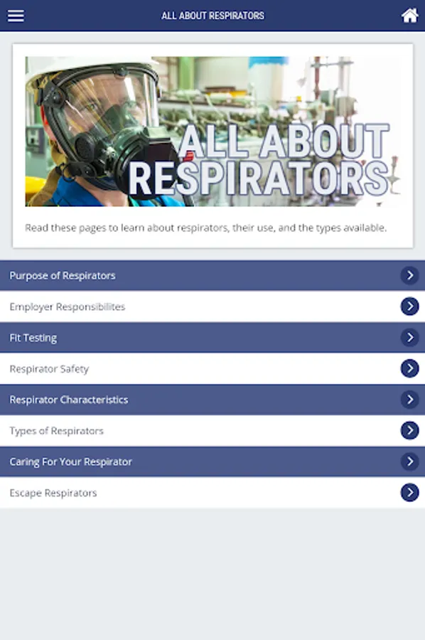 - All About Respirators: Learn about respirator types, fit testing, care, and user seal checking.