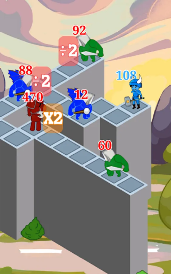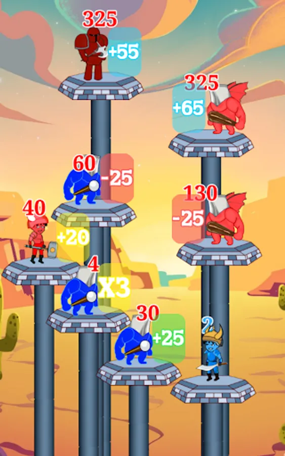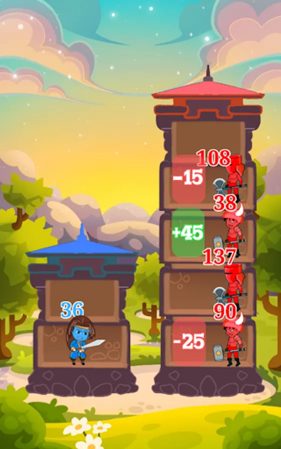 For example, the hero has a numeric value of 15. The enemy has a numeric value of 11. But next to him is an element that has -5.