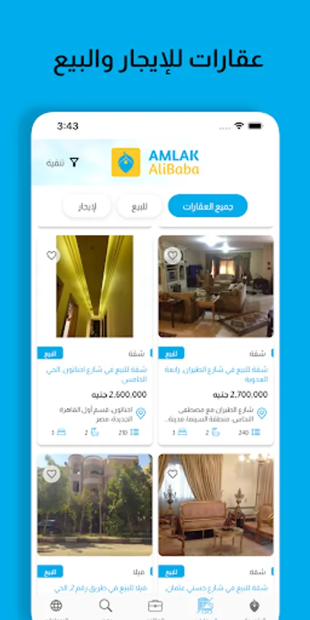 Buy and sell your unique property in a few seconds with Amlak Alibaba.