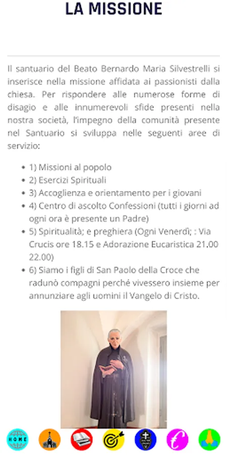The sanctuary of Blessed Bernardo Maria Silvestrelli is part of the mission entrusted to the Passionists by the church. To respond to the numerous forms of hardship and the countless challenges in our society, the commitment of the community present in the Sanctuary is developed in the following service areas: