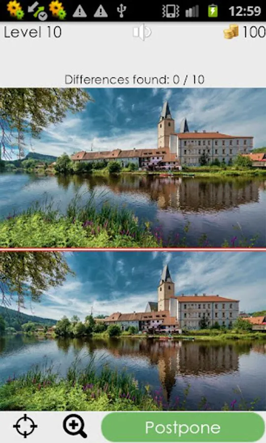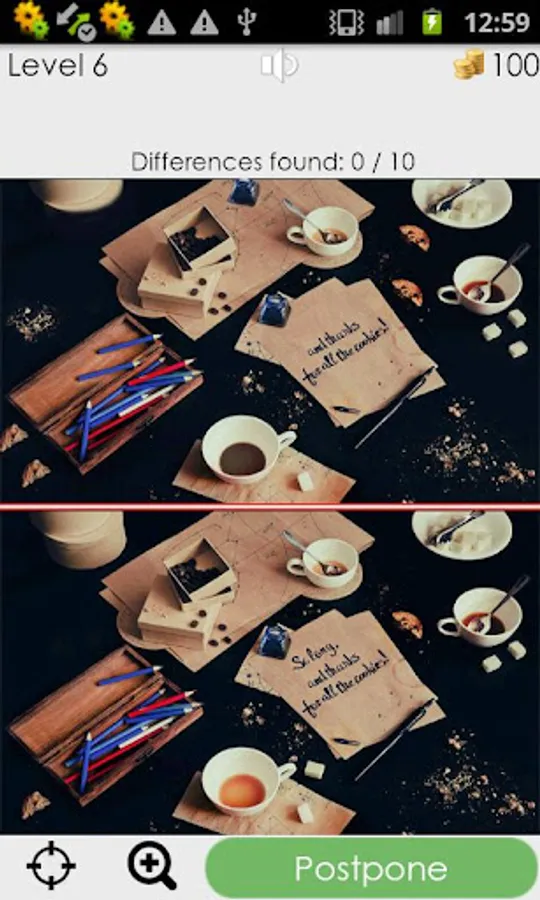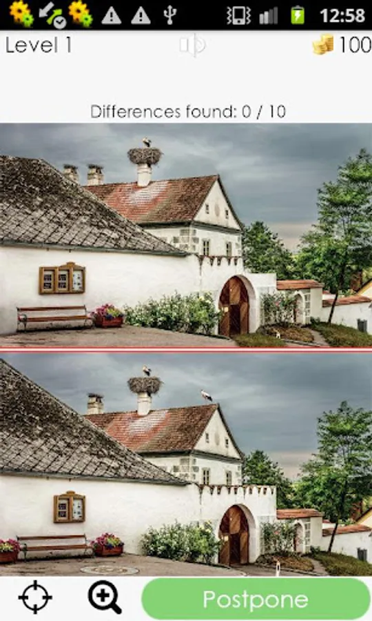 Look at the two almost identical pictures and try to find 10 differences.