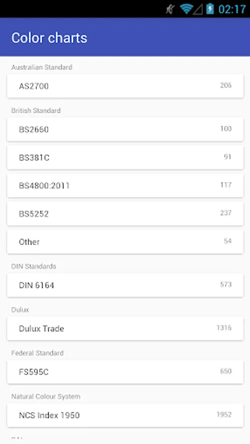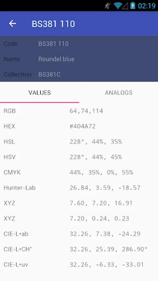 Find standard color, get rgb, hsl, cmyk, lab... params. Check analogs from other standards.