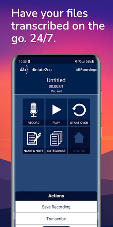 The dictate2us (d2u) Transcriber application is the world’s first fully integrated recorder and transcription system for Apple and Android devices. Experience the power of our award winning transcription service in your pocket, at your desk or on the go. Record letters, reports, interviews and much more. The possibilities are endless and the time and money we can save are great.
