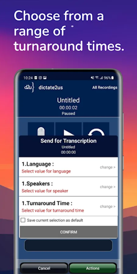 - Pause and resume uploads to dictate2us