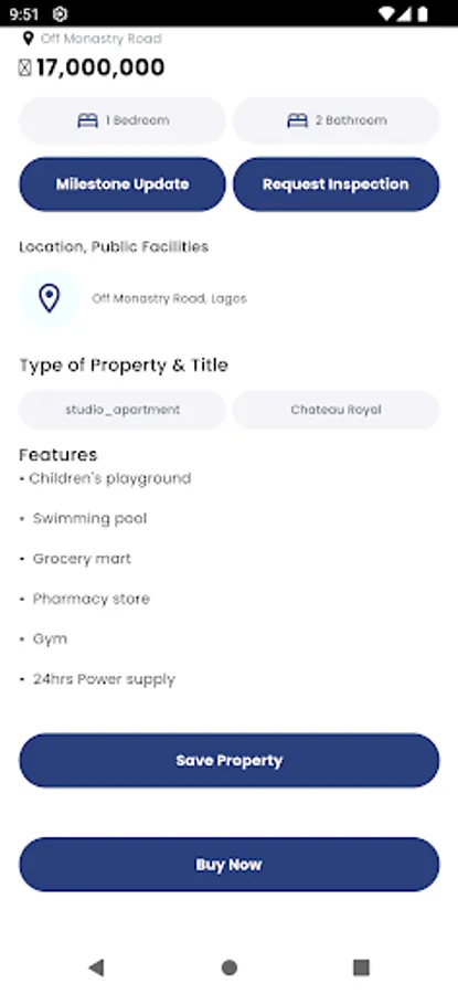 Chateau Royal app enables you to view all available real estate offerings including Off-Plans, Site and Service and completed properties. You can also perform other activities like virtual tours, book an inspection and initiate the process of the purchase of your dream home.