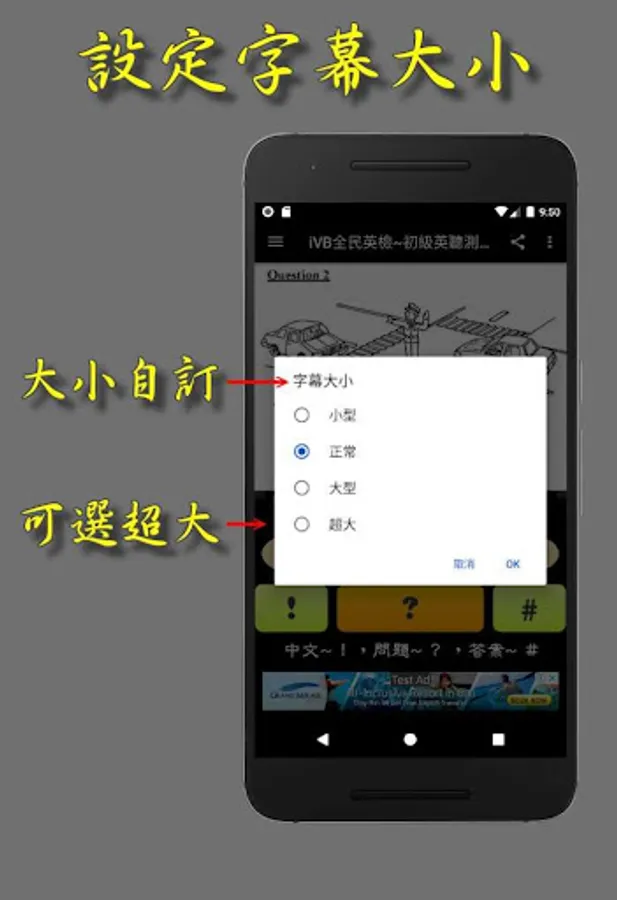 字幕大小:有4種字幕大小可供選擇,小型、正常、大型、超大。