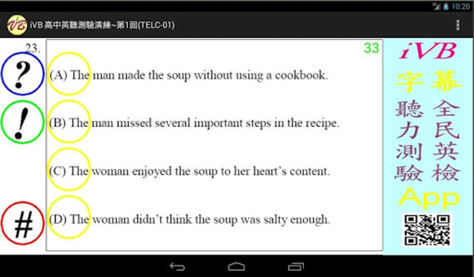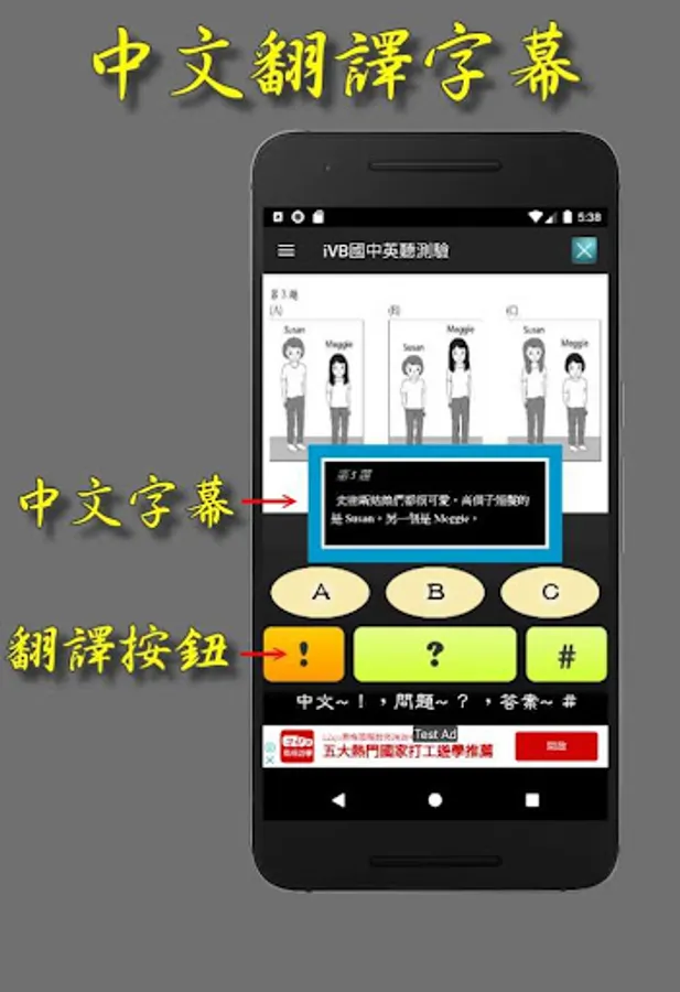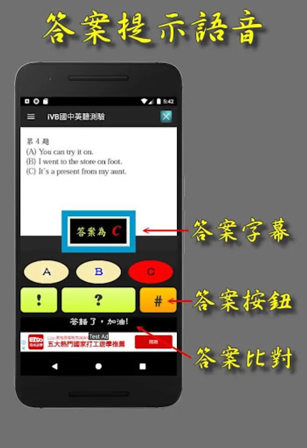 “#” 符號:播放中文答案和顯示答案文字。