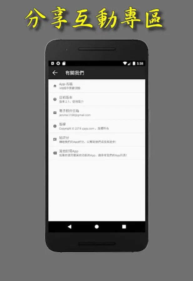 互動圈:以手指點擊圓圈區域即可獲得App之回應。