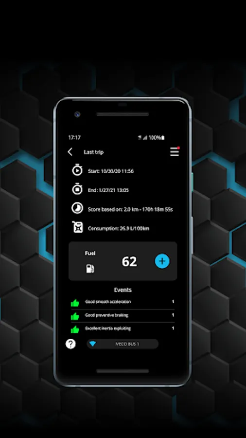 - Driving Style Evaluation: The user experience is enhanced thanks to the real-time driving style KPIs and to the possibility to compare scores between several trips.