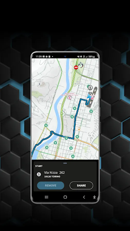 - Smart navigation with indication of the residual autonomy and of the battery recharge stations all along your way