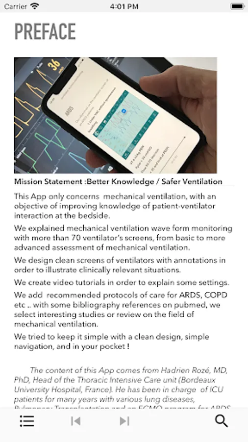 Pathological cases are explained using ventilator screenshots, from basic assessment to more advanced understanding (>60 screenshots). The screenshots are presented with annotations to illustrate each situation and to help you understand them; major studies. The aim is to keep it simple with a sleek design in your pocket at the bedside!