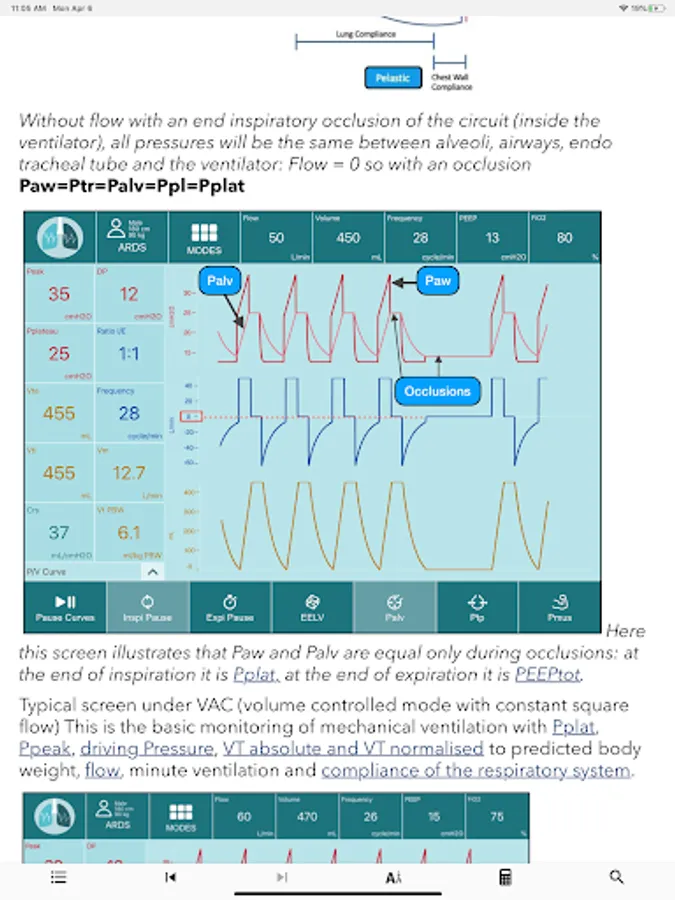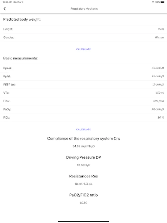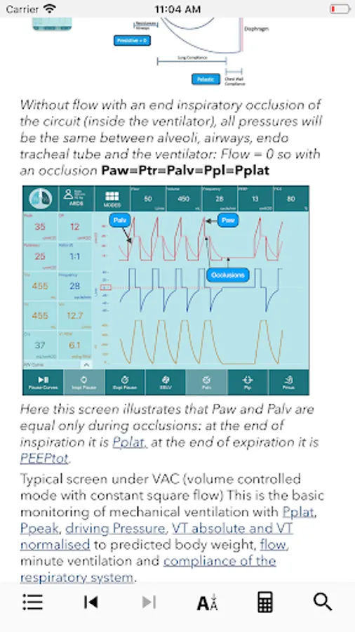 iVentilate provides a calculator for the fast assesment of the main formulas needed at the bedside and a detailed explanation of their basis.