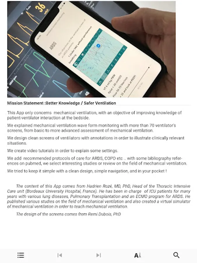 This application provides an insight into the world of mechanical ventilation for healthcare professionals and medical students to improve their understanding of patient-ventilator interactions.