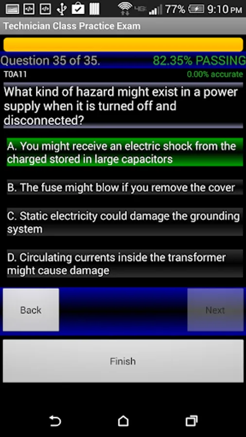 Keeps track of the questions you have mastered with a passing of 74% or better.