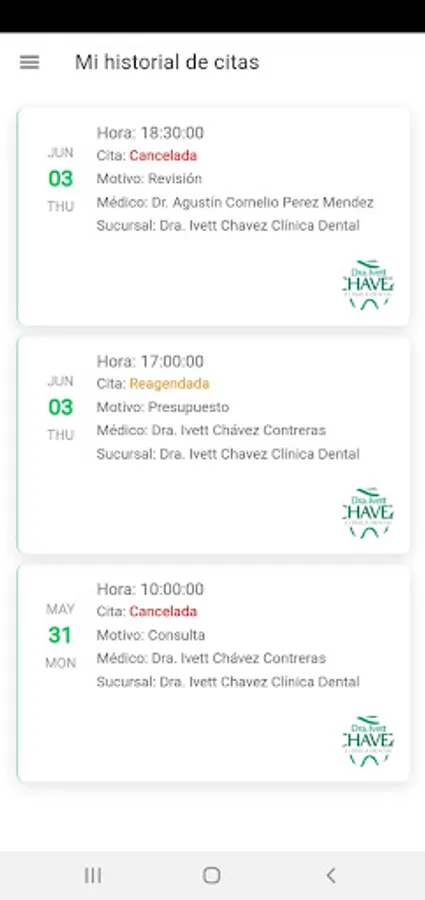 Dra Ivett Chavez is an application that allows you to schedule dental appointments where you can choose the desired branch as well as the available dentist.The application also offers policies with exclusive services and promotions that can be purchased with different payment methods in cash and credit cards or debit. You will be able to see your dating history and when purchasing the policy you will be able to register your family members so that they too can enjoy the services.