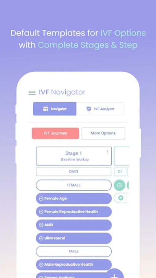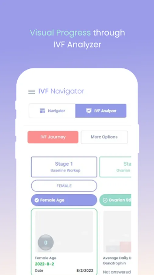 Navigate through your IVF journey with your fertility companion, IVF Navigator. Make your fertility journey your very own as you progress with detail, knowledge, and awareness.