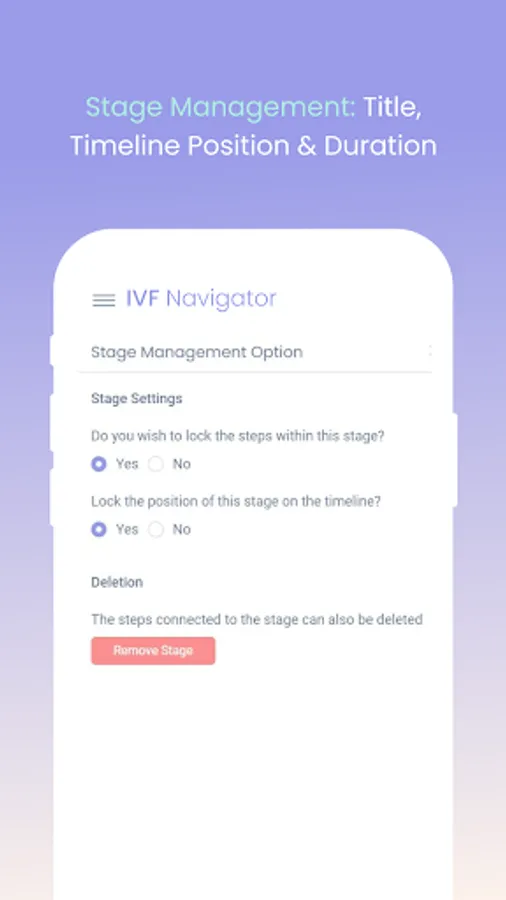 Customize & Personalize: Despite using the default cycle template, add and remove new stages, steps, days or weeks onto your very own IVF Cycle as desired.