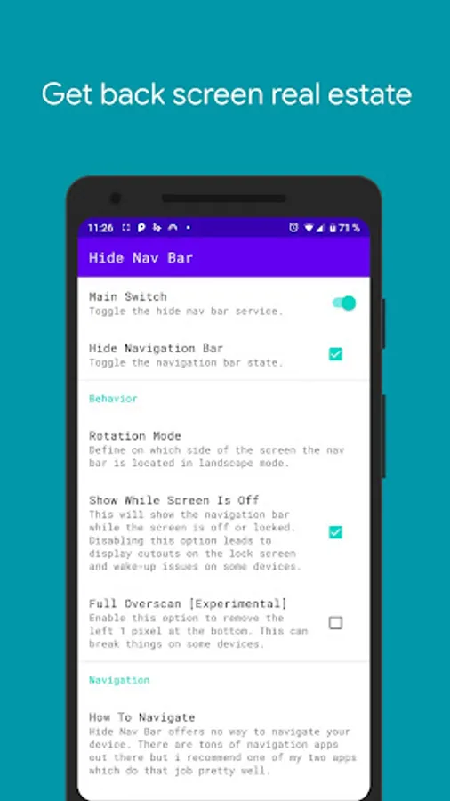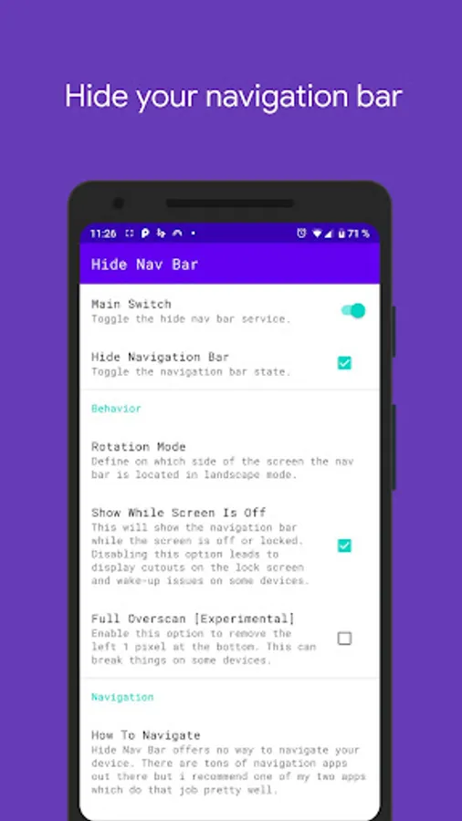 With "Hide Navigation Bar" it's possible to hide your "Navigation Bar"