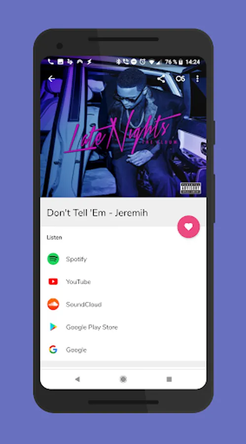• You can open every track of your "Now Playing History" in your favorite music apps such as Spotify, Google Play Music, YouTube and many more