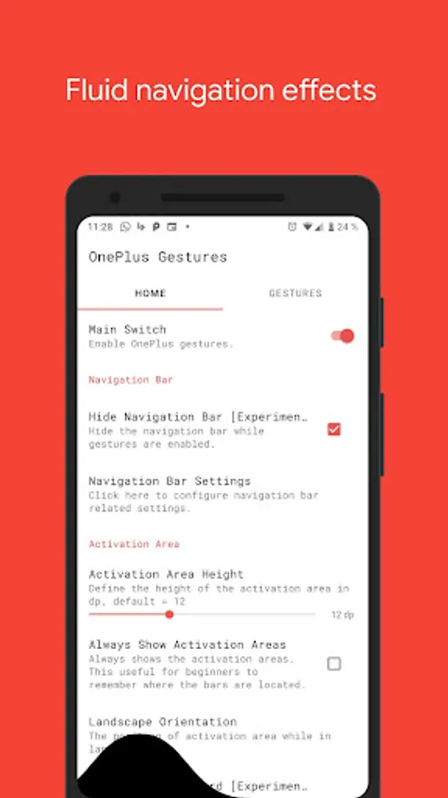 "Vivid Navigation Gestures" allows you to control your device with gestures instead of button presses.