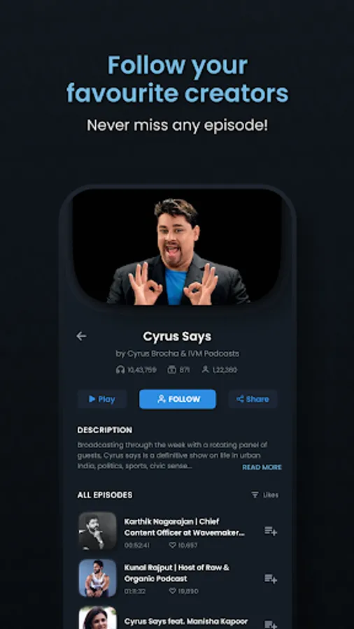 -Listen to latest trending episodes and get your weekly fix of entertainment right at your fingertips