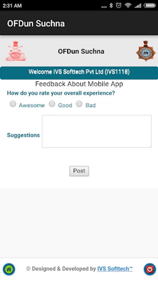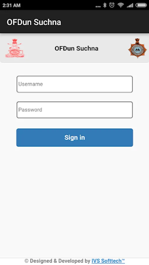 Ordnance Factory Dehradun Mobile App named OFDun Suchna for Vendors Support
