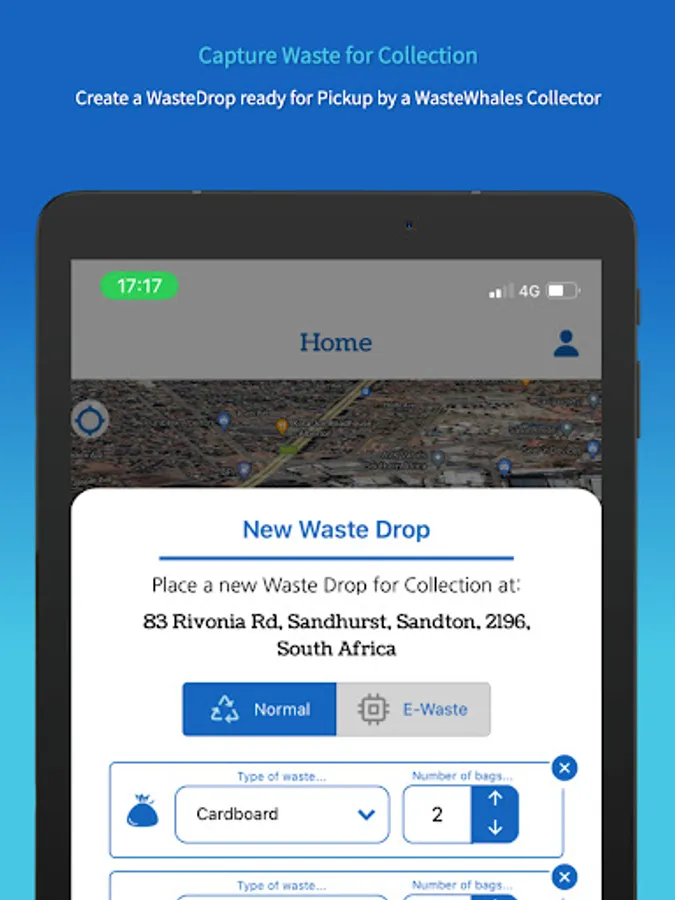 With WasteWhales, households are incentivized via our Droplets reward system to place waste ready for recycling. This creates what we call a Waste Drop. Waste Collectors can then get connected to available Waste Drops in their area and be directed on routes for collection. Collectors can also capture the weight of their waste, and be directed to nearby supporting Recycling Centers to sell the collected waste.