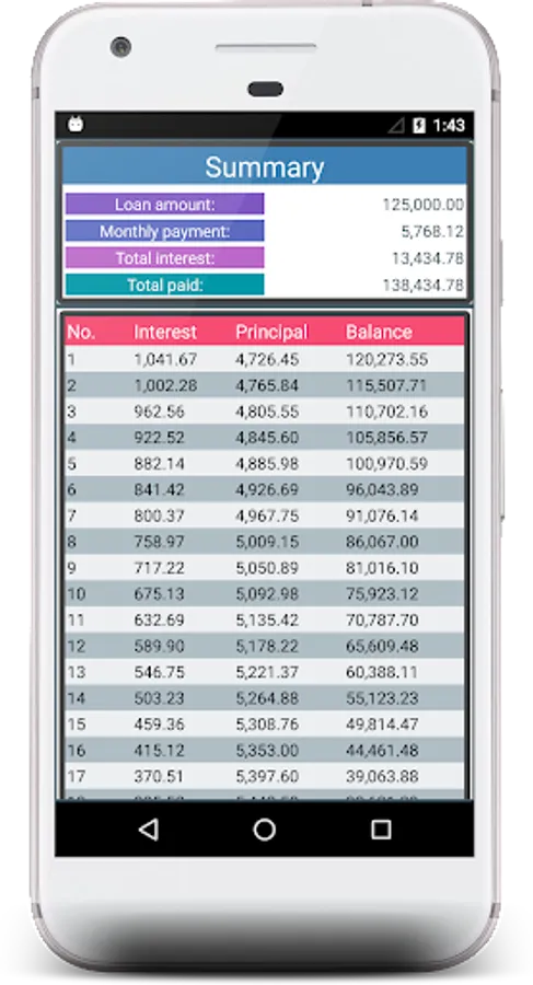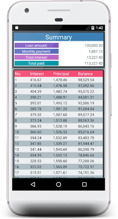 Loan amortization schedule is a table giving the details of the repayment amount, principal and interest component.