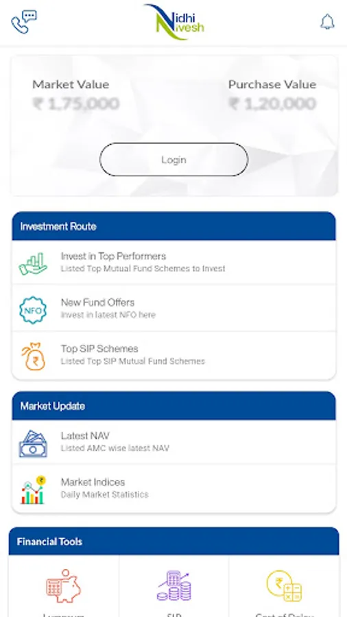 NIDHI NIVESH is one-stop solution for all your Wealth Management needs. You can use this state of the art app to stay on top of your Complete Financial Portfolio with all assets: