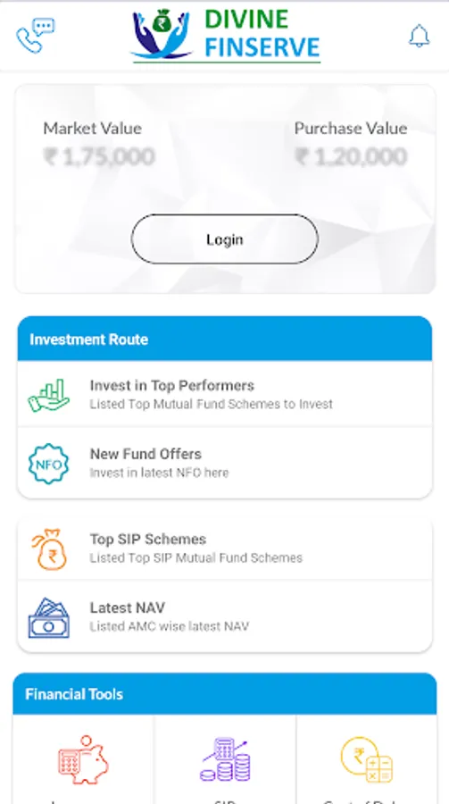 Divine Finserv is one-stop shopping for all your Wealth Management needs. You can use this state of the art app to stay on top of your Complete Financial Portfolio with all assets: