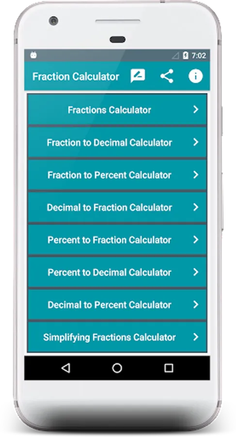 With this tool you can calculate 𝗳𝗿𝗮𝗰𝘁𝗶𝗼𝗻 𝘁𝗼 𝗱𝗲𝗰𝗶𝗺𝗮𝗹 𝗮𝗻𝗱 𝗽𝗲𝗿𝗰𝗲𝗻𝘁𝗮𝗴𝗲 .