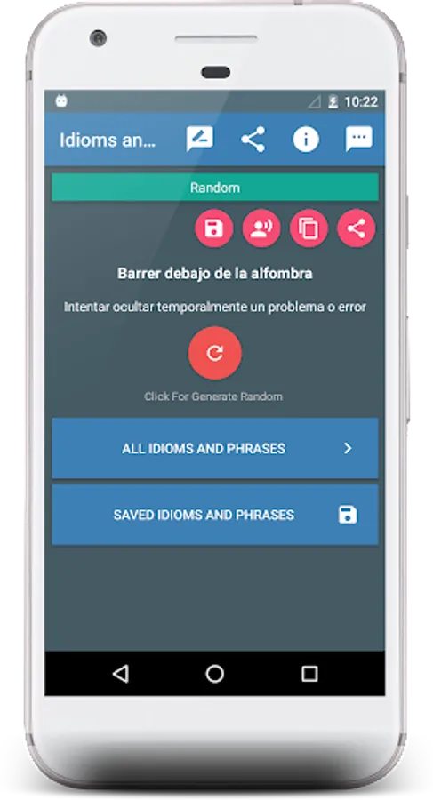 This app will help you learn Idioms and Phrases in Spanish very very easily. We have more than 3000 essential Spanish Idioms and Phrasal Verbs that will help you improve your speaking and listening Spanish