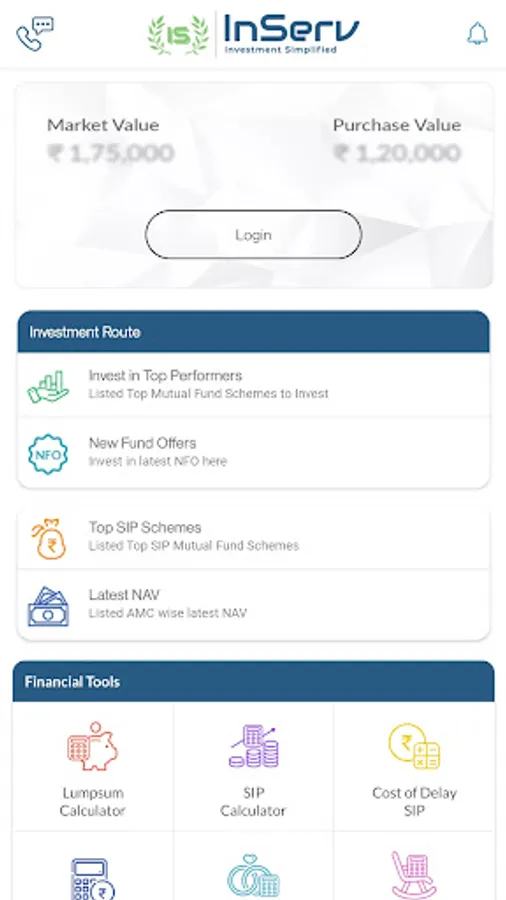 Inserv Financial is one-stop shopping for all your Wealth Management needs. You can use this state of the art app to stay on top of your Complete Financial Portfolio with all assets:
