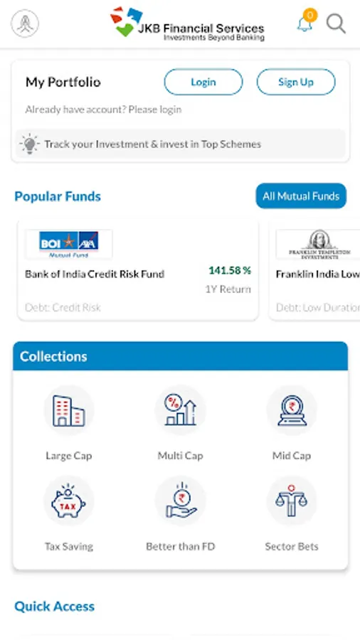 JKB mGROW is one-stop solution for all your Wealth Management needs. You can use this state of the art app to stay on top of your Complete Financial Portfolio with all assets: