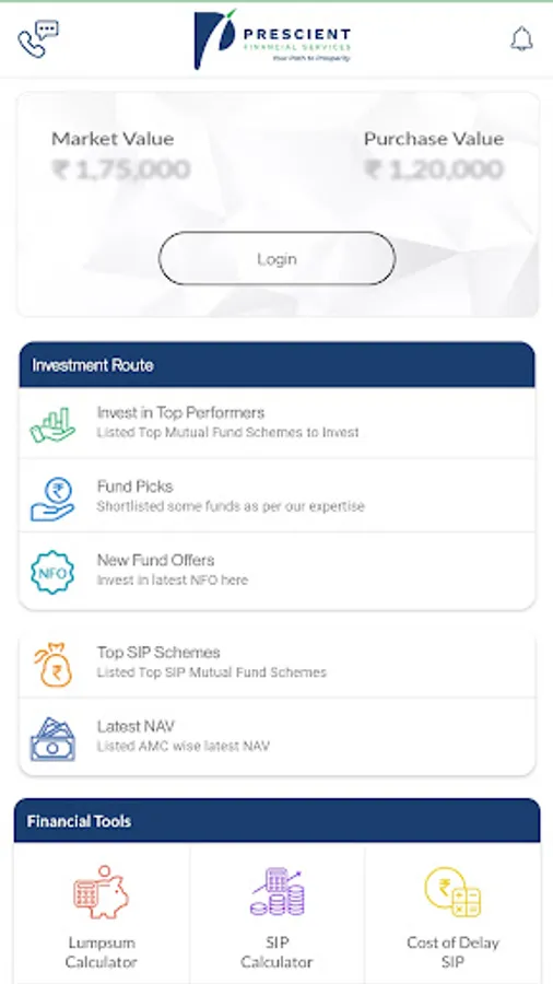 PRESCIENT is one-stop solution for all your investment needs. You can use this state of the art app to stay on top of your Complete Financial Portfolio with all assets: