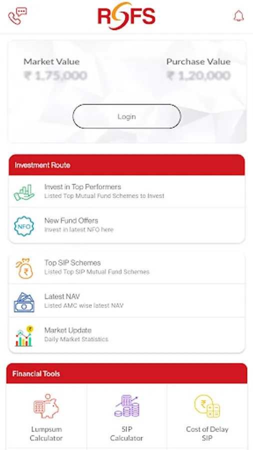 RSFS is one-stop solution for all your Wealth Management needs. You can use this state of the art app to stay on top of your Complete Financial Portfolio with all assets: