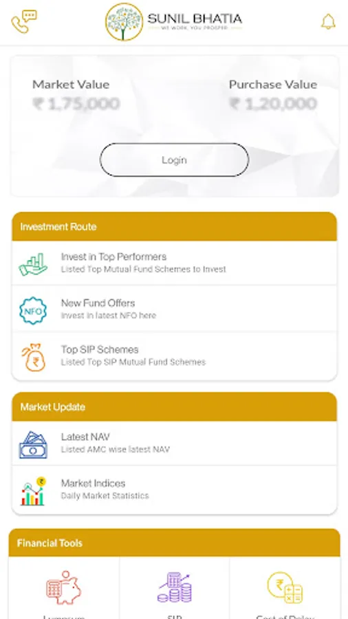 Sunil Bhatia is one-stop solution for all your Wealth Management needs. You can use this state of the art app to stay on top of your Complete Financial Portfolio with all assets: