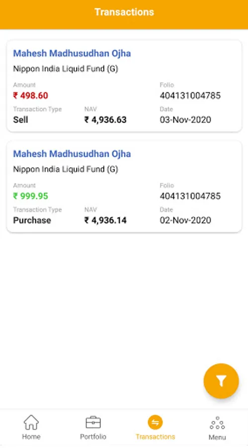 - 1 click Transaction statement of any period with folio nos.