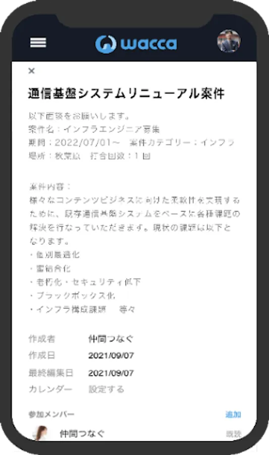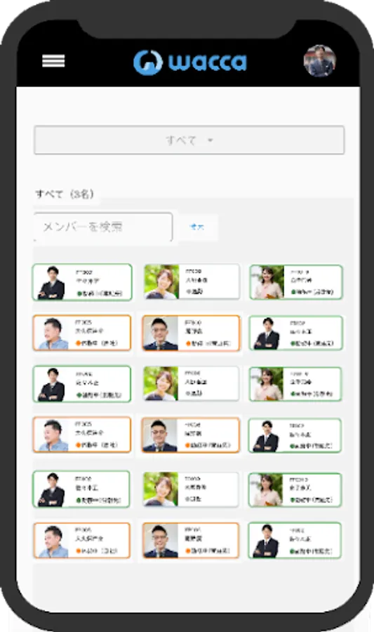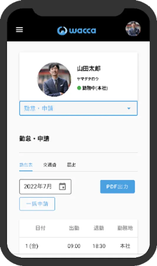 A characteristic of the L SES industry is that the main way of working is to go to the client's office. With Wacca, you can not only manage attendance and departure, but also check the attendance status (company, resident, at home) and visualize overtime.