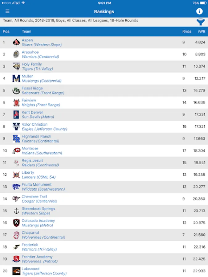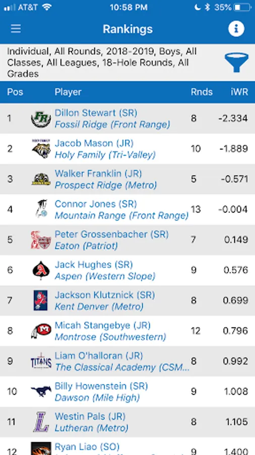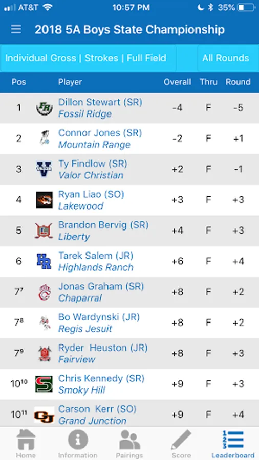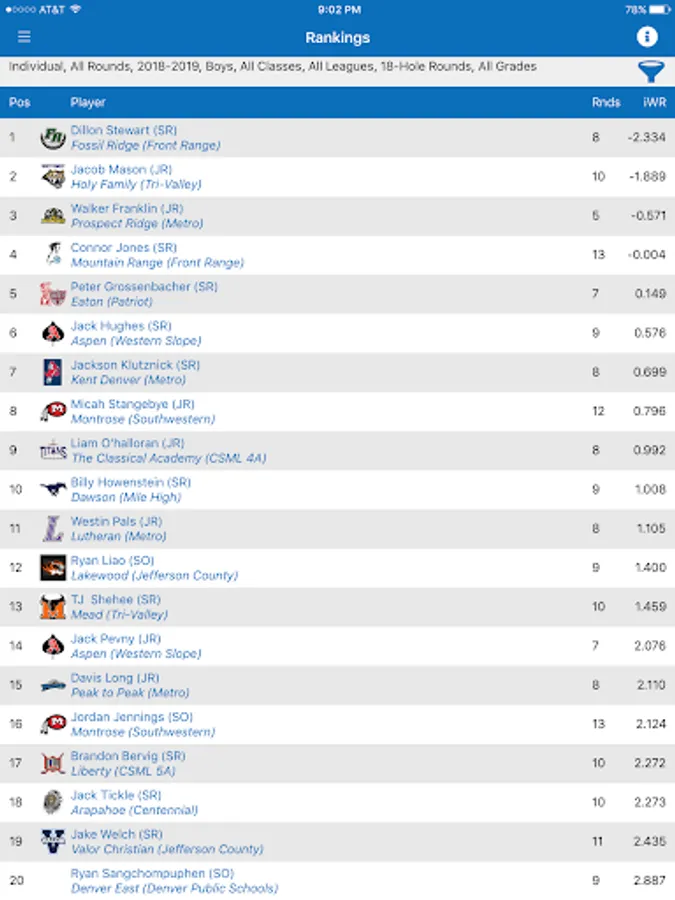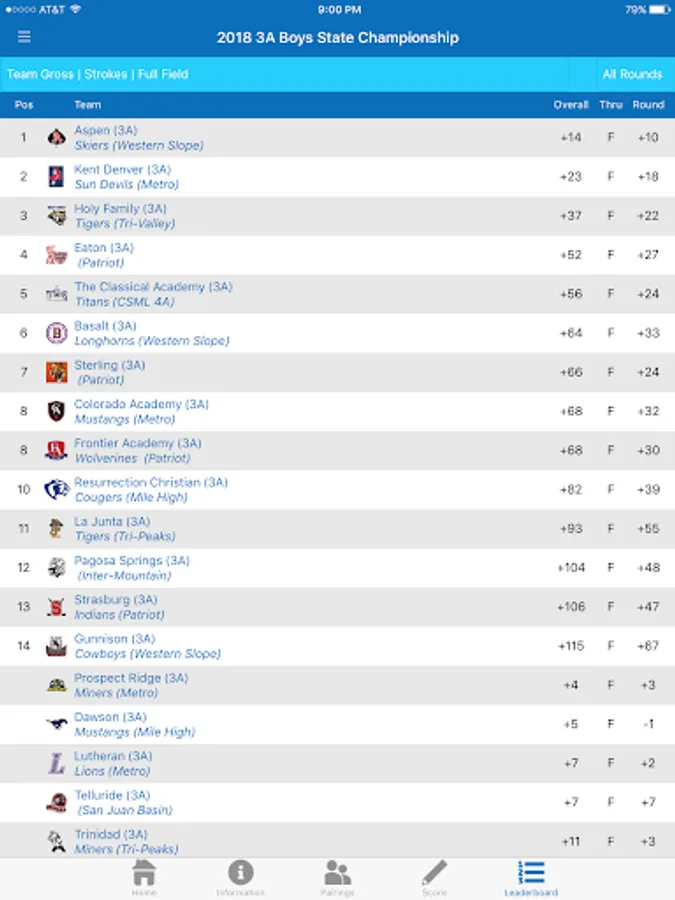 After tournaments are finalized, state, regional and local rankings are automatically updated to show how teams and golfers stack up against their competition. Statistics are captured and aggregated on the mobile app so coaches, players and spectators can track progress throughout the season.