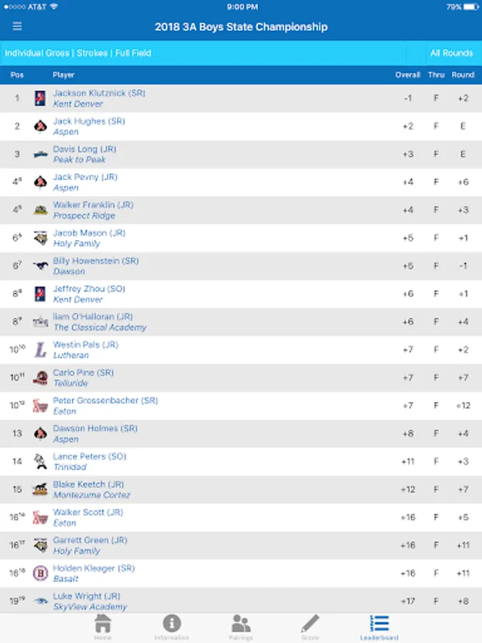 We combine desktop and mobile application technology in partnership with the Colorado High School Activities Association (CHSAA) to allow golfers, coaches, athletic directors and spectators from all over the world to view live leaderboards during high school golf tournaments. On game day, scores are entered into our easy-to-use scoring interface to let spectators and competitors keep track of your round in real time.