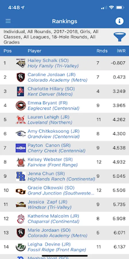 Players, schools and the state association maintain a profile of all the tournaments, statistics and rankings throughout the season as well as their high school career.